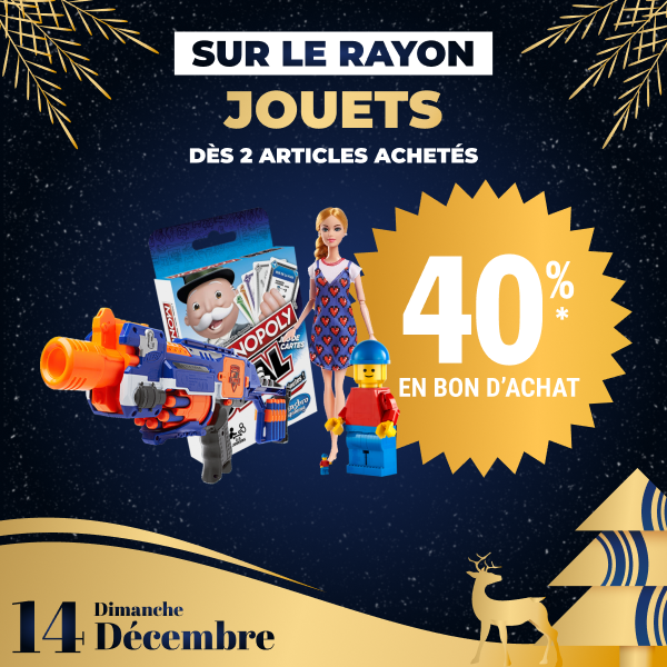 *Voir conditions en magasin. Hors livres, hors billetterie, hors recharge téléphone, hors location, hors gaz,hors cartes cadeaux